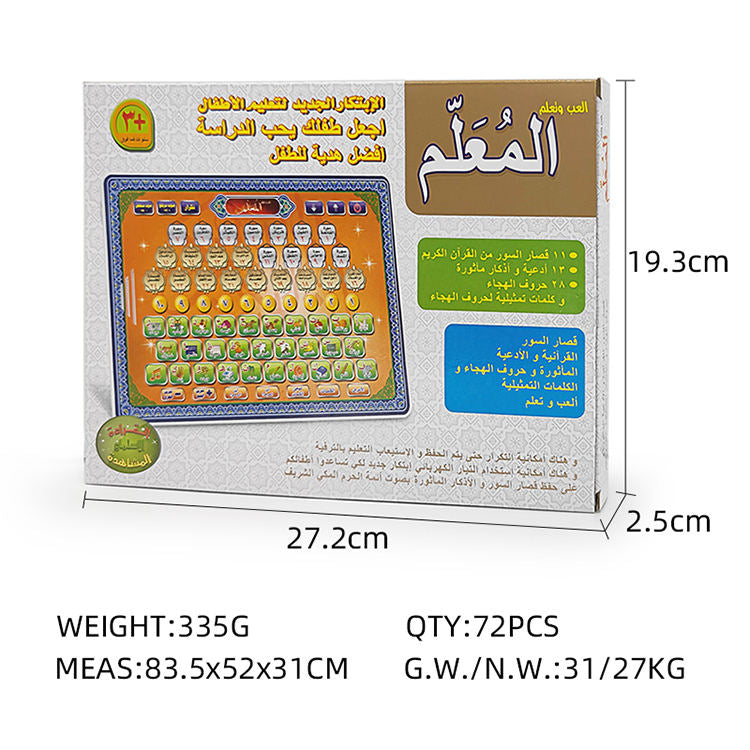 The Islamic Learning Tablet (Al-Mu'allim - ุงู„ู…ูุนูŽู„ู‘ูู…) is a must-have educational tool for Muslim children around the world. Designed to look and feel like a fun electronic device, this tablet is packed with culturally and religiously enriching content to help your child master the basics of the Arabic language and the Holy Quran.