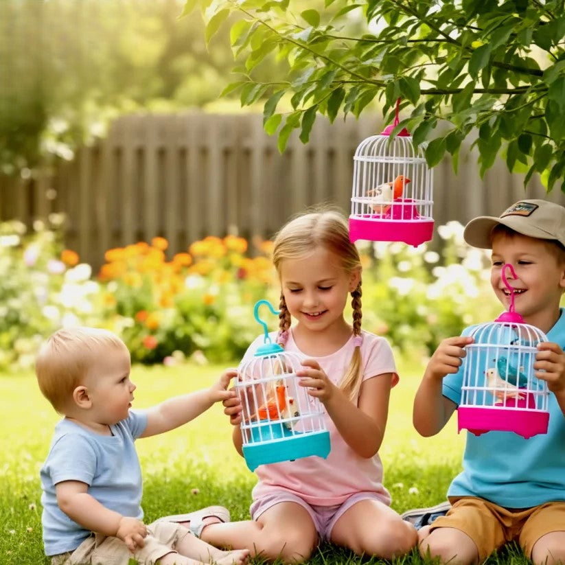 Bring joy and entertainment to your little ones with this Mini Bird Cage Toy. Designed with vibrant colors, this toy features two adorable birds inside a lightweight plastic cage, making it a fun and engaging playtime companion. The birds chirp and move when activated, creating a realistic and cheerful sound that kids love.